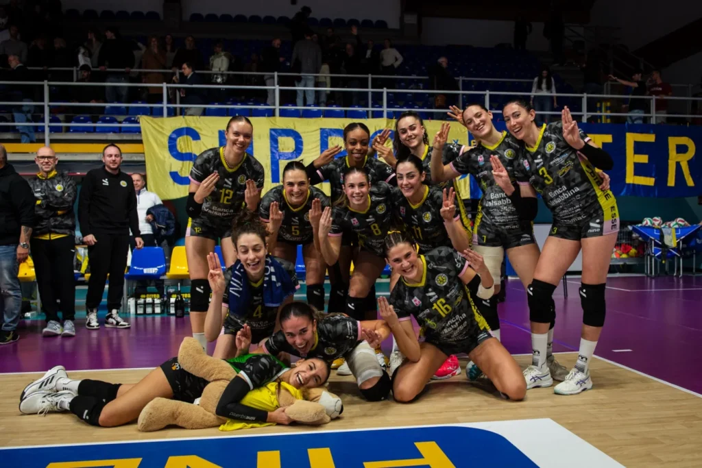 Nel secondo parziale l’head to head è ancora più acceso, poi le ragazze giallonere tirano fuori gli artigli da vere leonesse: un monster block di Michieletto ci porta in vantaggio di tre punti (7:10), la classe e l’eleganza di Rossella Olivotto fanno segnare il 10:15, Giorgia Amoruso sale in cattedra prendendosi il ruolo di assoluta protagonista e il suo attacco vale il +6; Erika Esposito prova a metterci una pezza (16:22), Francesca Michieletto conquista il set point (17:24) e Modestino ci porta in parità sul conto dei set conquistando il 18:25.