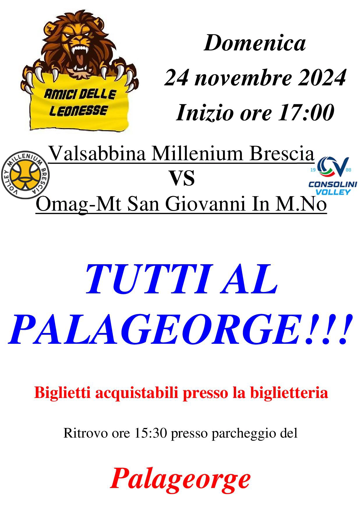 Gli amici delle leonesse ti aspettano al Palageorge di Montichiari per la partita casalinga Valsabbina Millenium Brescia – Omag-Mt San Giovanni In M.No