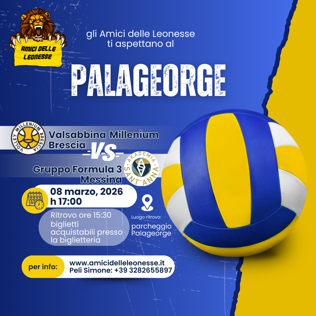 Gli amici delle leonesse ti aspettano al PalaGeorge di Montichiari per la partita casalinga del Pool Promozione A2 Valsabbina Millenium Brescia – Gruppo Formula 3 Messina