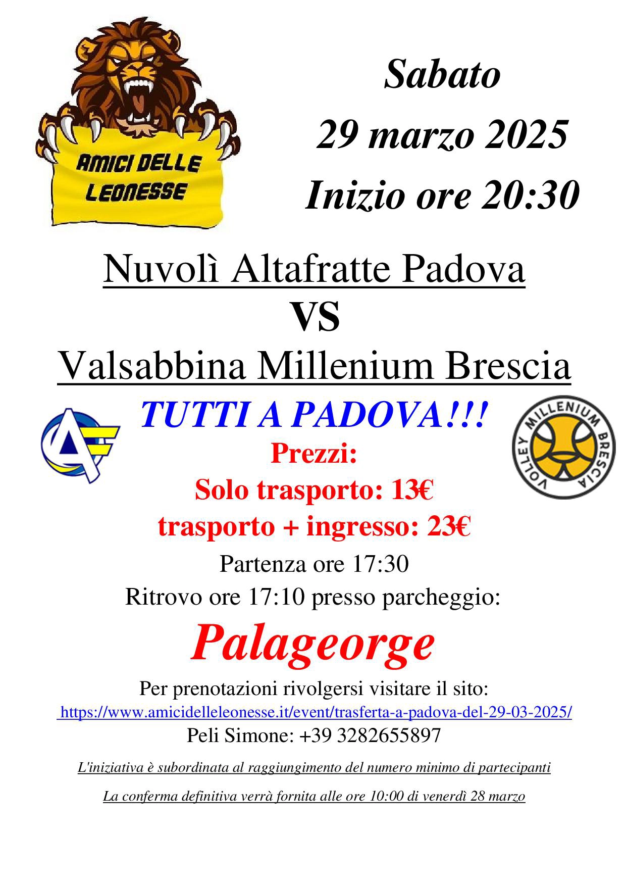 Gli amici delle leonesse organizzano la trasferta a Padova