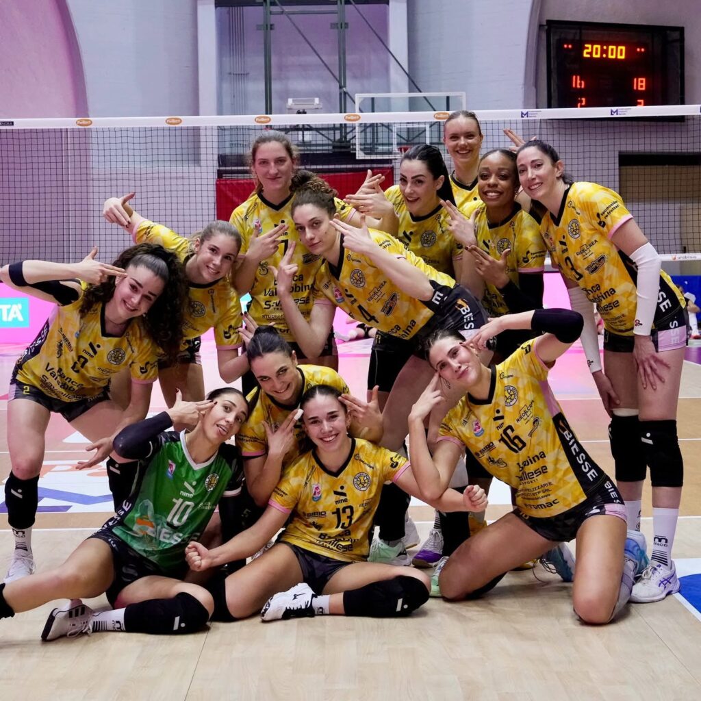Per l’occasione coach Solforati sceglie la regina Vittoria Prandi in cabina di regia, Francesca Michieletto e Giorgia Amoruso in posto 4, al centro la coppia Olivotto-Modestino, in posto 2 l’opposto lettone Katrīna Struka, libero il capitano ed MVP del match Beatrice Parrocchiale.