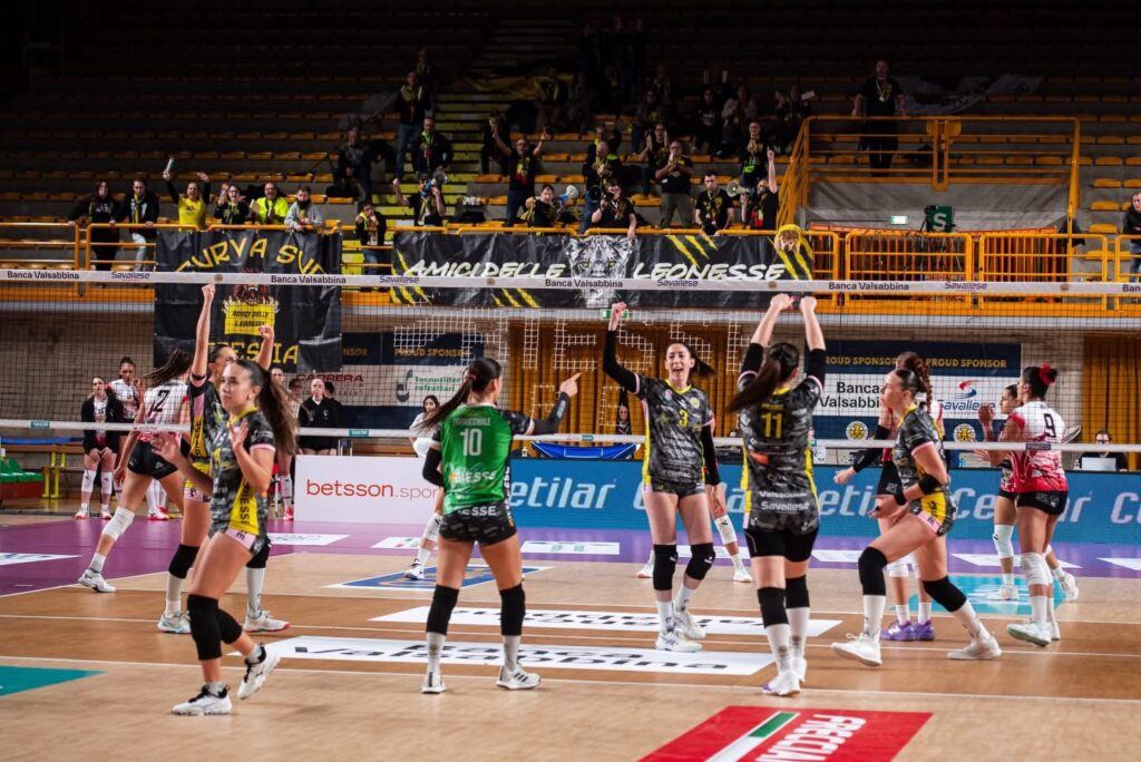 Per l’occasione coach Solforati sceglie in cabina di regia la regina Vittoria Prandi, in posto 4 Francesca Michieletto e Giorgia Amoruso, in posto 2 la nuova leonessa Julia kavalenka (32 punti per lei all’esordio), in posto 3 Dalila Modestino e Lea Orlandi (Olivotto influenzata) e libero il capitano Beatrice Parrocchiale.