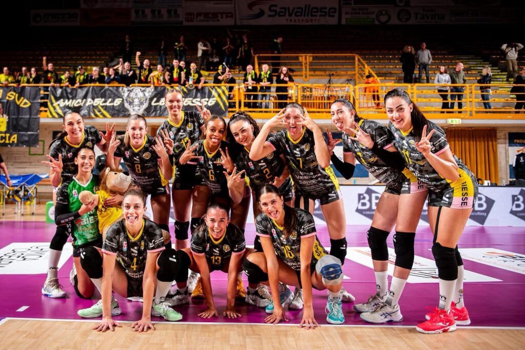 Coach Solforati sceglie lo starting six di routine: Prandi in cabina di regia, Francesca Michieletto e Giorgia Amoruso in posto 4, opposto l’atleta giamaicana con passaporto USA Mychael Vernon, al centro Modestino e Olivotto (8 presenze con la maglia della nazionale italiana), libero il capitano Beatrice Parrocchiale.